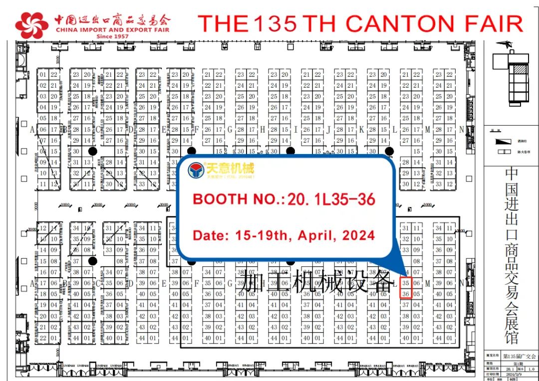 誠邀您參與第135屆廣交會!天意機(jī)械與您相約20.1L35-36展位