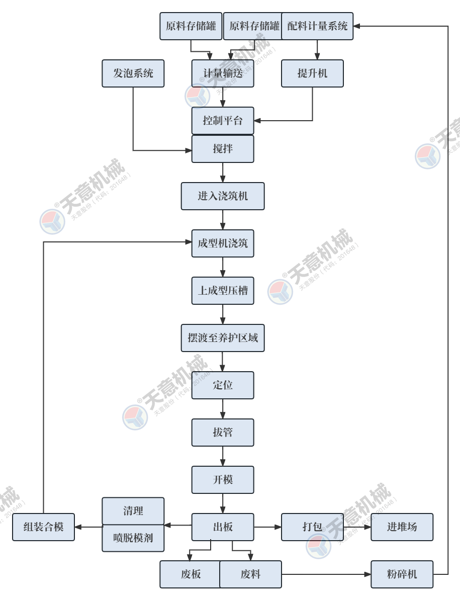 1.采用水泥發(fā)泡墻板專用5立方雙螺帶式高速攪拌機(jī),有效容積為3.5立方,攪拌均勻,攪拌速度快(發(fā)泡完成后60秒內(nèi)可將泡沫和料漿攪拌均勻),整體攪拌周期6-8分鐘/次,單次攪拌可澆筑一臺(tái)20塊墻板機(jī),雙寬螺帶式設(shè)計(jì),可有效的降低泡沫破損率。